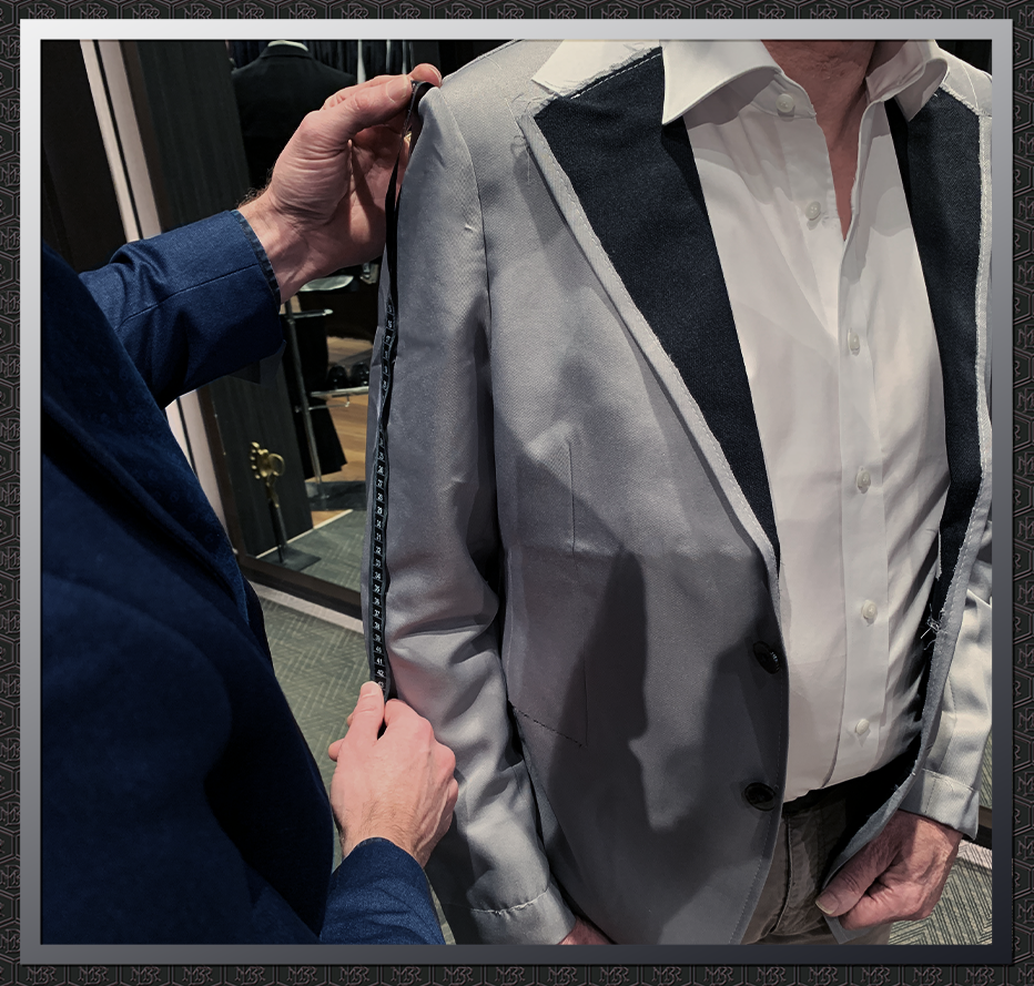 At your preliminary fitting, we perform a 20-point fit check. An expert process most don’t offer. It ensures every detail is precisely right before final tailoring.